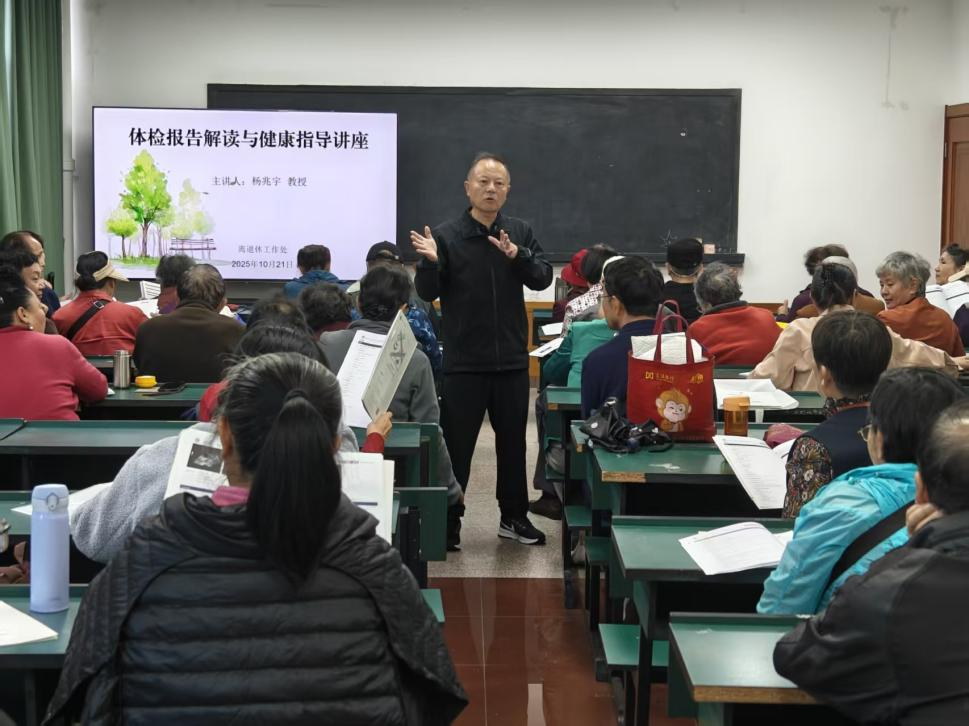 今年8月至9月,我校组织了全体老同志进行健康体检,为帮助老同志正确理解体检报告中的各项指标,科学评估自身健康状况。2025年10月21日离退休工作处在老干部活动中心二楼4207教室举办《体检报告解读与健康指导》讲座。