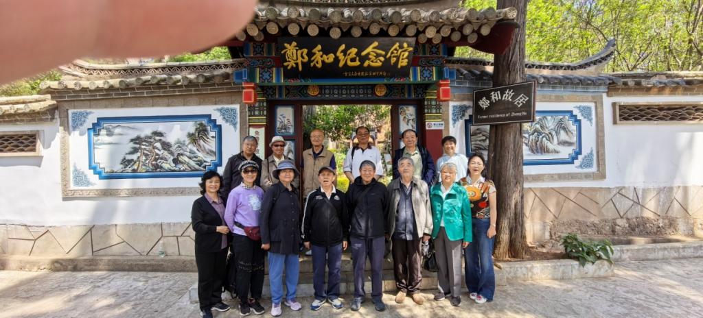 在郑和故居和展室里,同志们驻足瞻仰,仔细观看。六百二十年前,郑和率领的船队,远航西太平洋和印度洋,拜访了30多个国家和地区,扩大了我国在世界的影响。