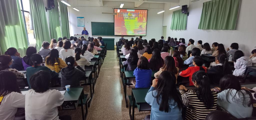 外国语学院党委充分发挥昆明学院“五老”的正能量作用,2021年10月29日,外国语学院党委组织全体师生党员、入党积极分子、发展对象120余人在博文楼开展“万名党员进党校”集中培训。邀请学校退休教授、云南省党史学会副会长、昆明学院“五老”宣讲团成员黄启后老师做了题为“以史为鉴、开创未来——学习习近平总书记在庆祝中国共产党成立100周年大会上的重要讲话精神”专题讲座,受到了师生的热烈欢迎。黄教授的讲座理论联系实际,结合国情、省情、市情、校情,对师生深入学习“七一”重要讲话精神,进一步认识和理解重大意义、丰富内涵及核心要义有很好的帮助。