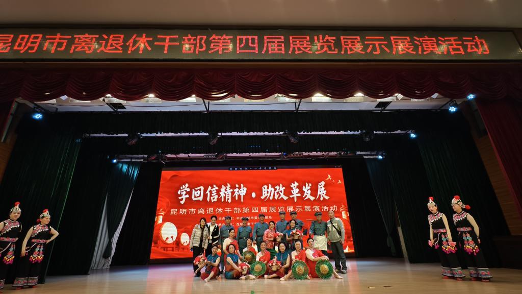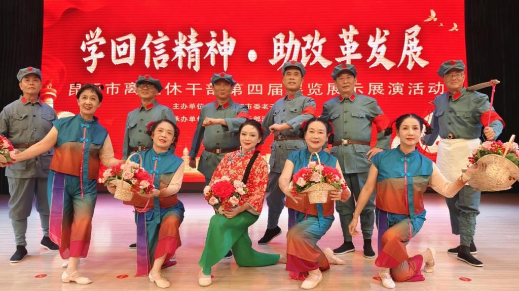 为深入学习领会和贯彻落实中央领导同志给离退休干部的重要回信精神,展现我校广大离退休干部离岗不离党、退休不褪色的政治本色,弘扬中华民族尊老敬老的传统美德,同时丰富离退休干部精神文化生活。2025年10月23日,在2025年重阳节之际,我校退休教职工排练的舞蹈《万泉河水》参加“学回信精神 助改革发展”昆明市离退休干部第四届展览展示展演活动。